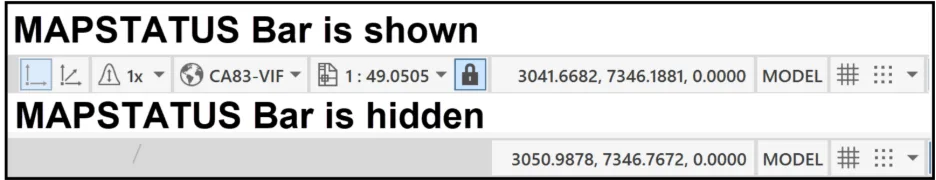 To enable this, type MAPSTATUSBAR at the command line and press <Enter>. You have the option of showing or hiding the Map Status Bar. Type S or pick S from the command line to show it.